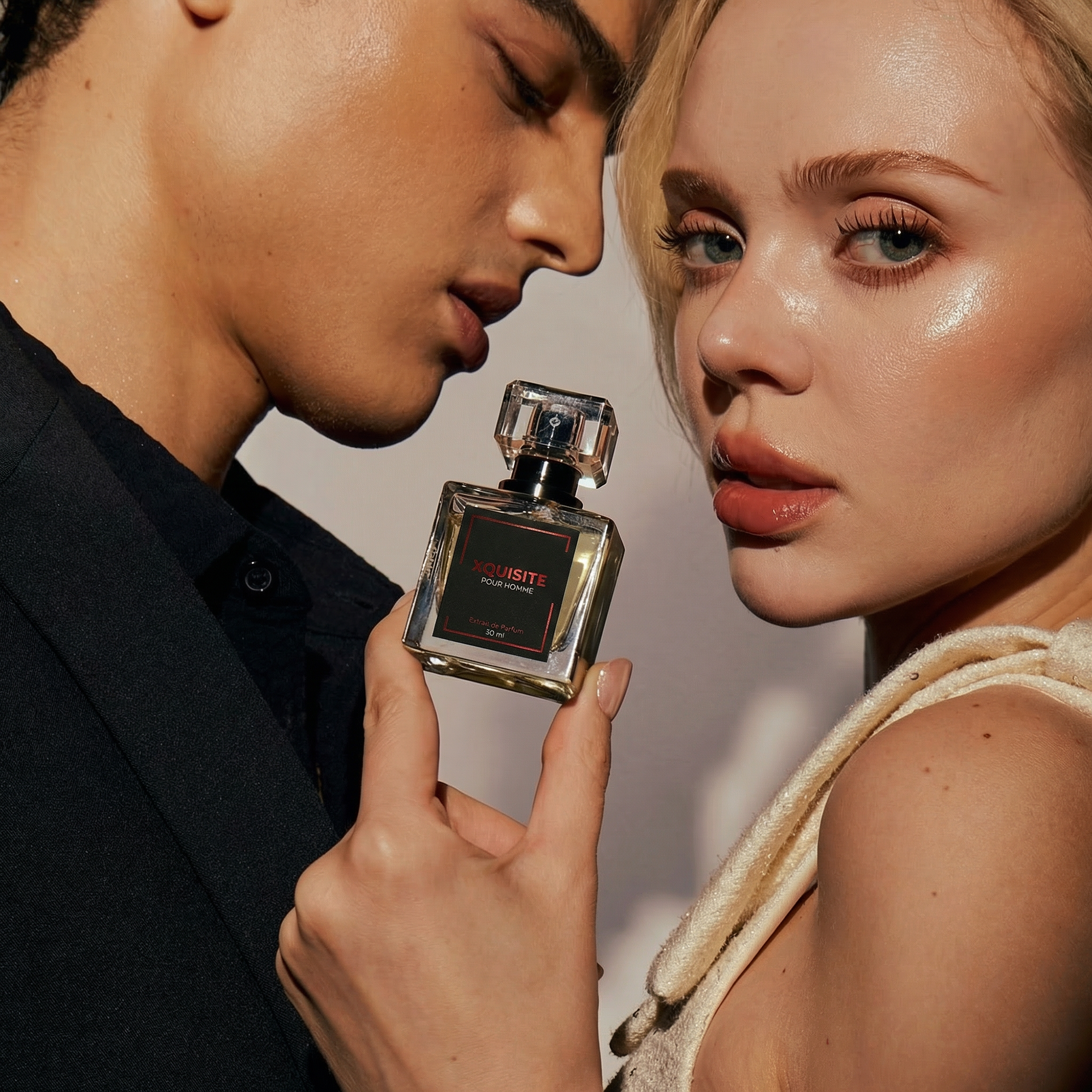 XQUISITE® ist ein Extrait de Parfum mit 30% Duftölkonzentration – dreimal höher als Standard-Eau de Parfum. Veredelt mit unserem proprietären JK Pheromonkomplex entsteht mehr als ein Duft: eine Präsenz, die wahrgenommen wird.